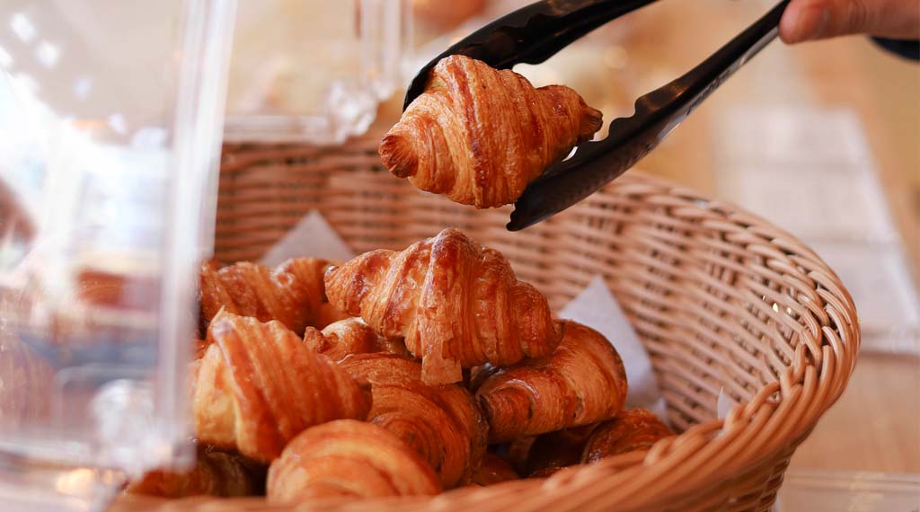 ふっくらとした食感を楽しんでいただけるよう国産ではなく、フランス産の小麦を使用。コクが深まり、風味が豊かとなる発酵バターを加え、濃厚な味わいのフランスのクロワッサンを再現。食べやすく、可愛らしい大きさです。