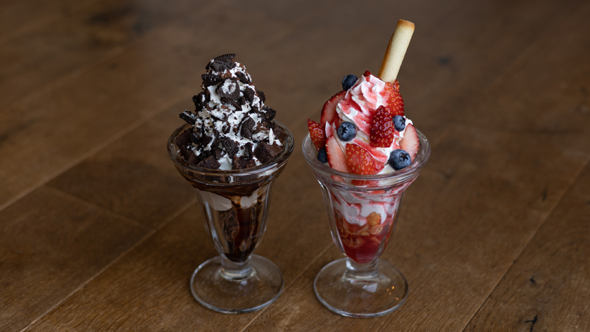 濃厚なミルクアイスとザクザク食感のココアクッキー、チョコケーキを組み合わせた、見た目も食感もお楽しみいただけるサンデーです。