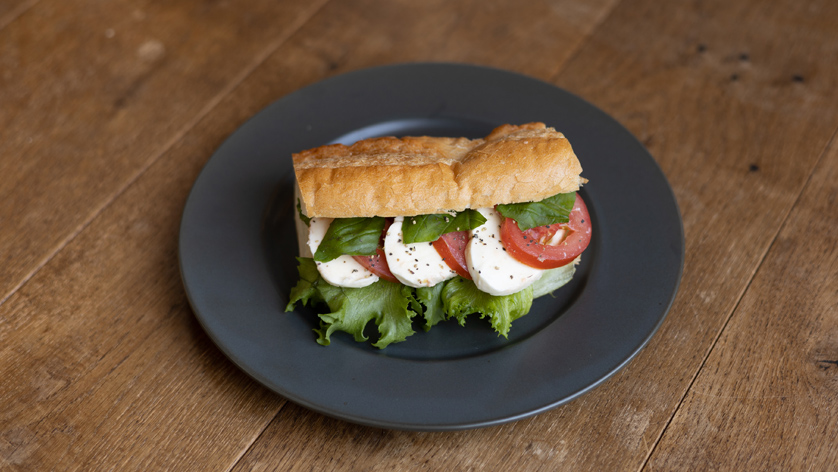 フレッシュなモッツァレラチーズとトマト、バジルを合わせたシンプルなカプレーゼ風のサンドです。