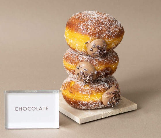甘すぎずビターな味わいの濃厚チョコレートクリームを入れた生ドーナツです。
